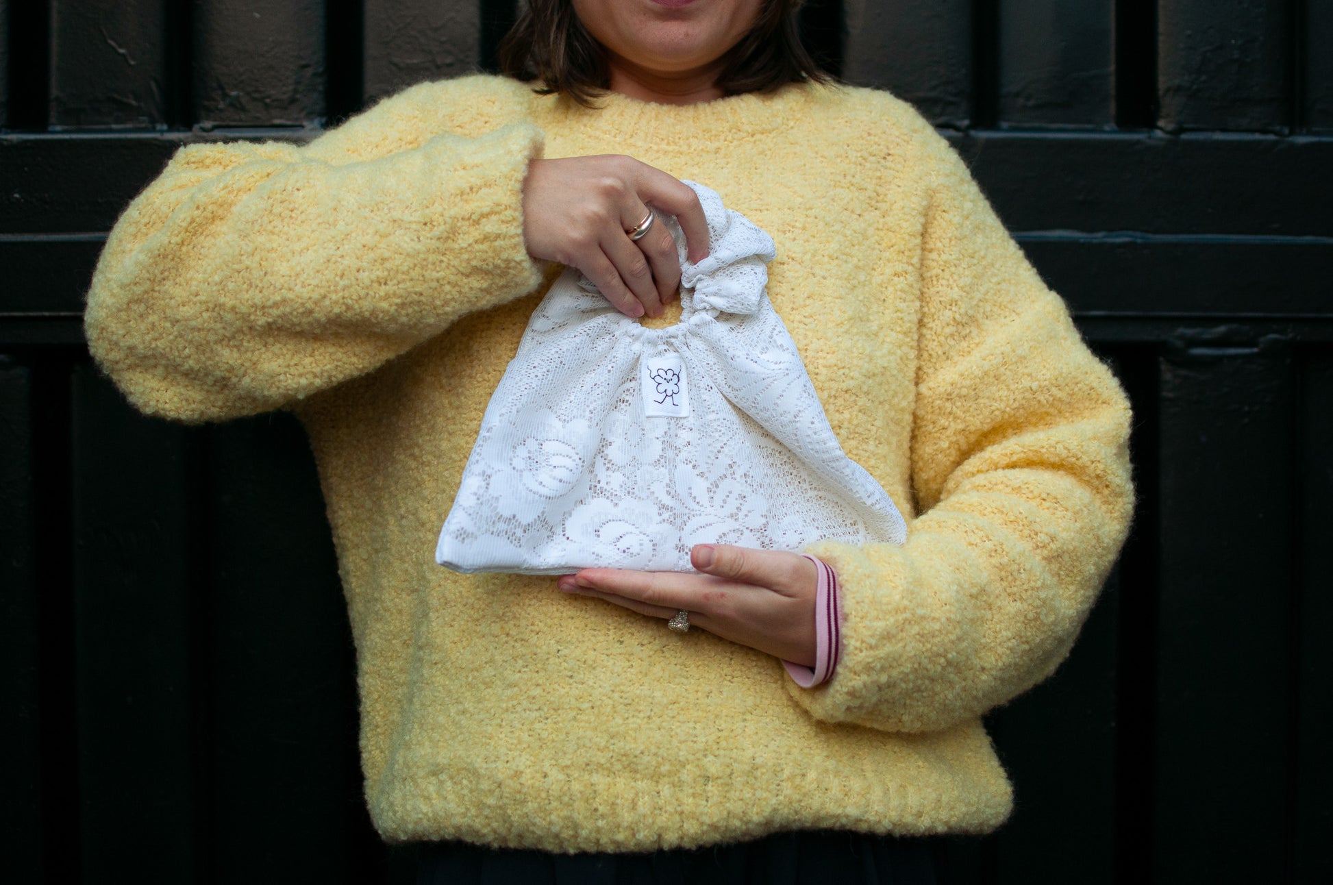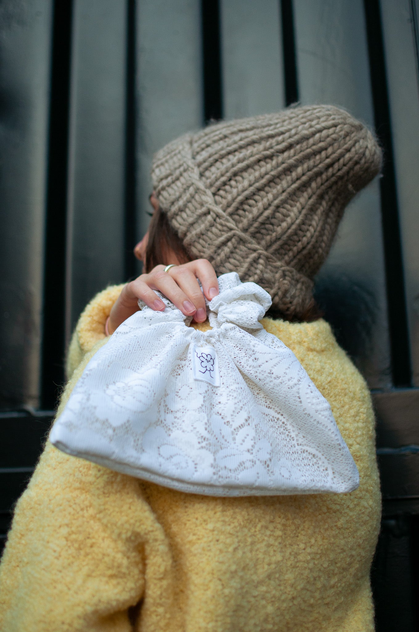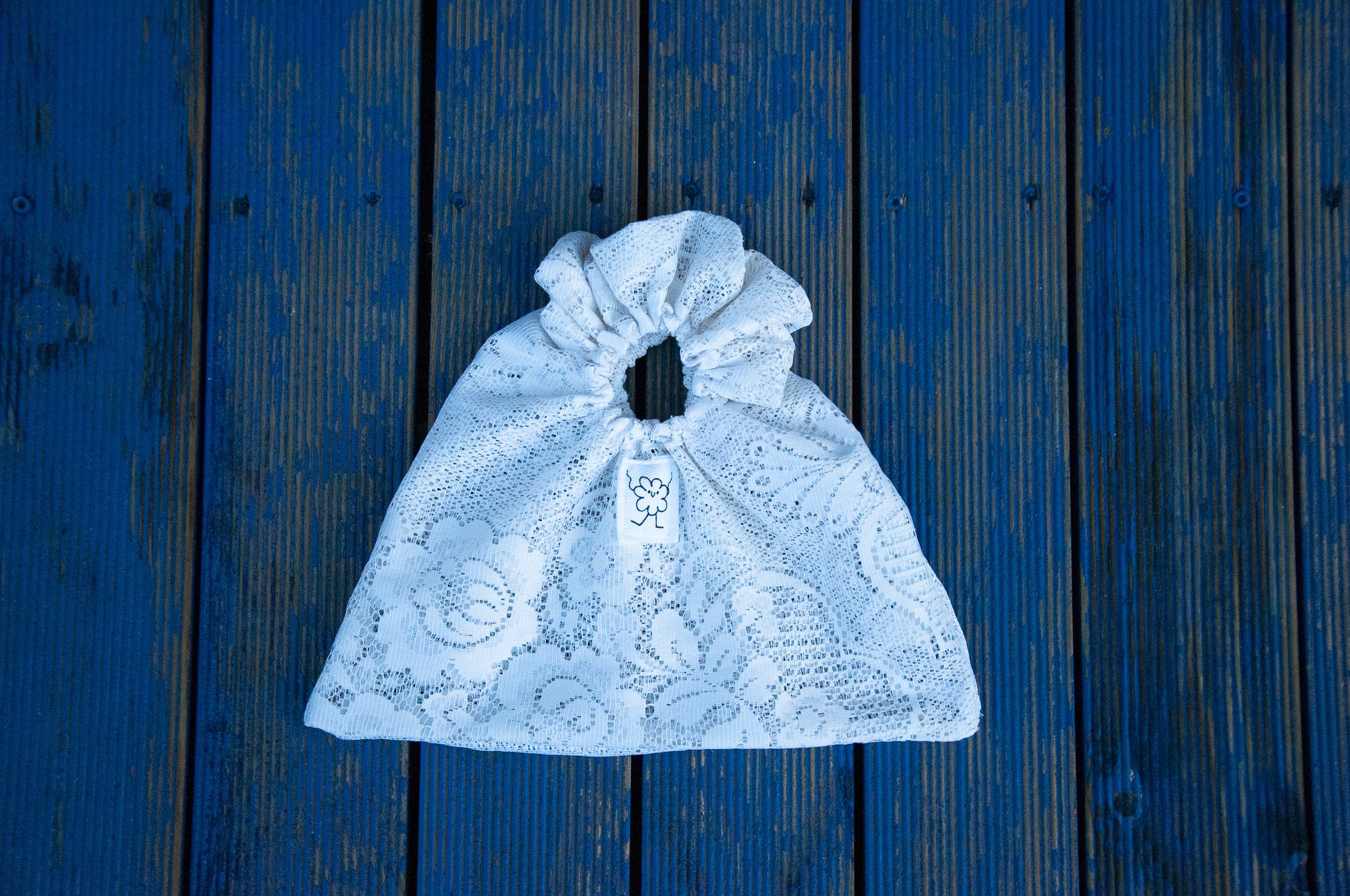 Przedstawiam  nową torebeczkę •Milvę•. Powstała oczywiście z firanek z drugiego obiegu, to taka mała torebeczka dosyć elegancka, bo koronkowa, ale sprawdzi się też dla kogoś kto kocha eklektyczny styl (tak jak ja) więc będzie idealna też do dresu! Ma wszytą gumkę więc można nosić ją za dziurkę albo na nadgarstku jak scrunchie! Jest uszyta z dwóch warstw materiału, można spokojnie więc  nosić w niej wszystkie najpotrzebniejsze rzeczy (jak to w torebeczce).